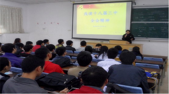 此次党课紧紧抓住当前中共十八届三中全会召开这一时政热点,组织党员教师与学生学习了十八届三中全会公报全文,党课通过详实的资料和生动的语言,围绕“三中全会主要干什么”、“改革主要涉及哪些领域”等方面进行解读,授课紧扣形势,深入浅出,并穿插了提问互动环节,为师生答疑释惑,帮助大家进一步了解和把握当前发展格局,开阔视野,准确把握会议精神实质,不断增强贯彻落实全会精神的自觉性和坚定性。