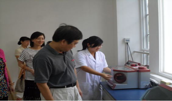 黄院长首先深入临床技能实训中心查看实验室的建设情况,了解实训室设备运行使用及社会服务情况。他边走边看边问,在腹部触诊模型前饶有兴趣地进行肝触诊。