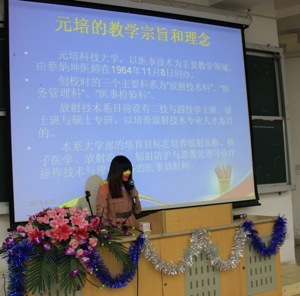 汇报会上,2012年秋季学期赴台湾元培科技大学交流学习的陈嘉庚、林薇、陈昭曦三位同学分别从元培科技大学简介、专业学习、生活情况等三方面,以PPT的形式生动形象地为大家呈现了他们在台湾精彩的学习生活,展示了海峡两岸不同的教学模式,台湾高校一流的学习资源和台湾教育体制下高校丰富多彩的校园文化。与大家分享心得感受,同时和在场学生互动交流,以期让大家对台湾各方面有更多的了解,为后续学生赴台交流学习搭建平台。最后,临床医学技术系党总支副书记张绿文对本次交流会进行总结,并对我系2013年秋季赴台交换生的工作进行布置和动员。