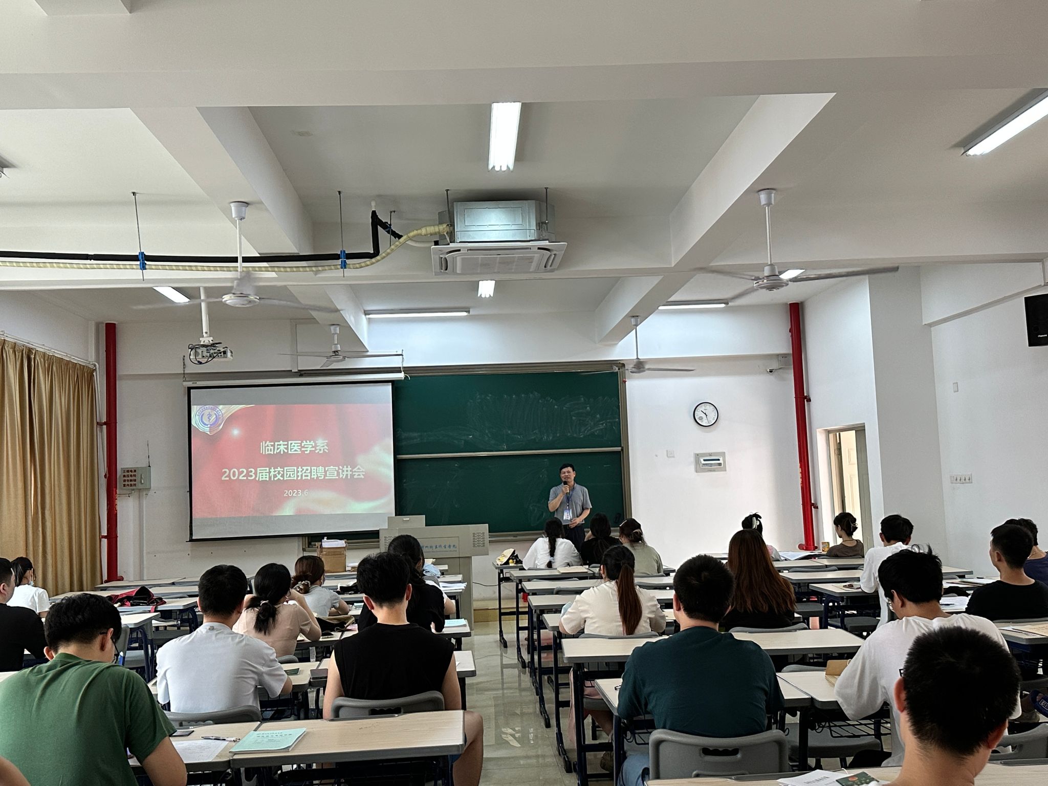 近日,临床医学院2023年校园招聘精神病医院专场会在励志楼305教室举行。诏安安定康复医院、平和泰康医院和长泰慧康医院参加了此场招聘会,招聘会共设置临床医学、卫生信息管理等16个岗位,50余名同学参加。