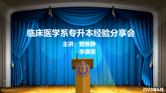 奋学乐教勤耕耘,桃李芬芳捷报传;鲲鹏久有凌云志,硕果飘香又一年。为加深学生对专升本考试的认识,明确升学目标,掌握备考技巧,培养和提高学习能力,6月13日,临床医学系举行线上专升本经验交流分享会。