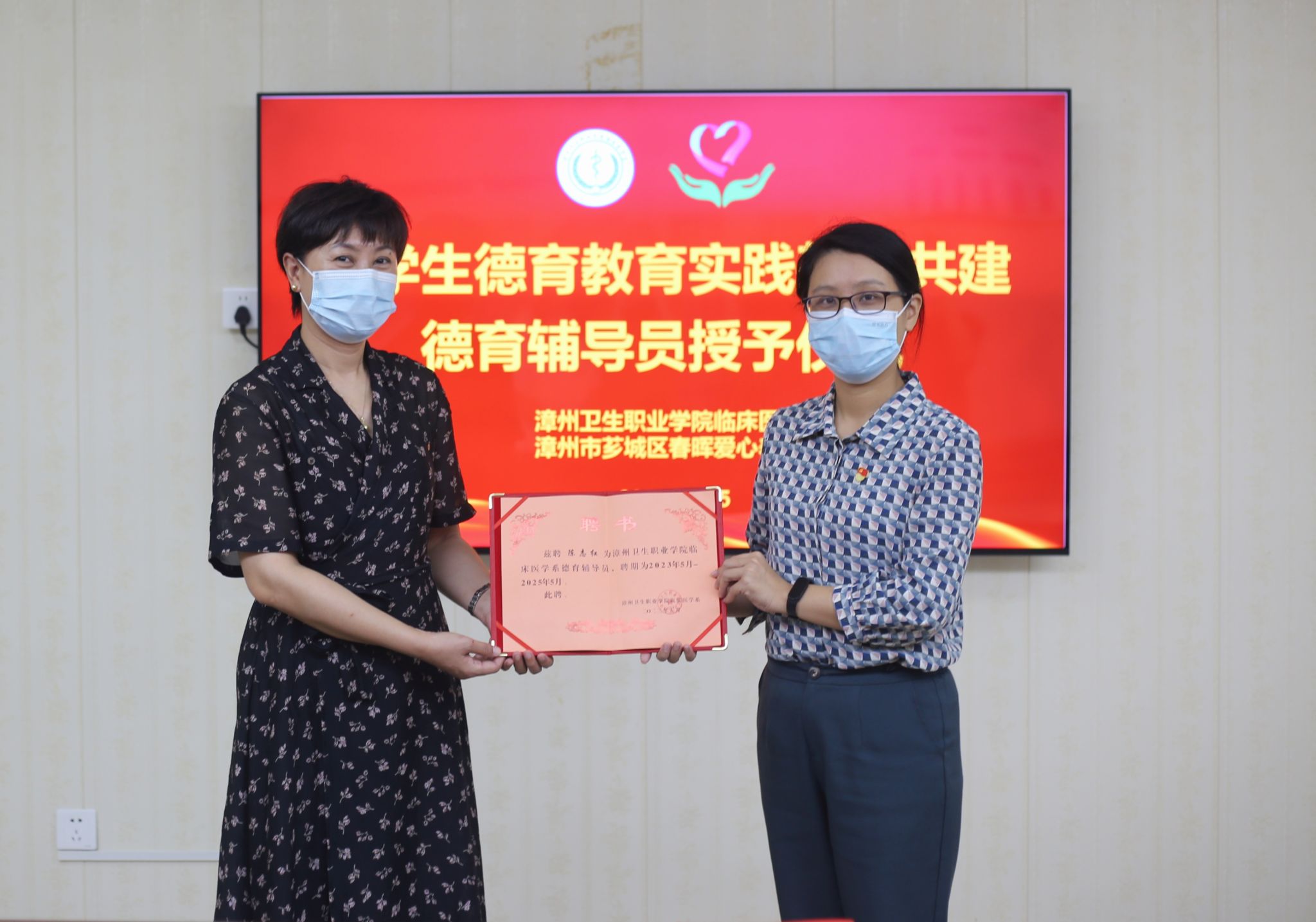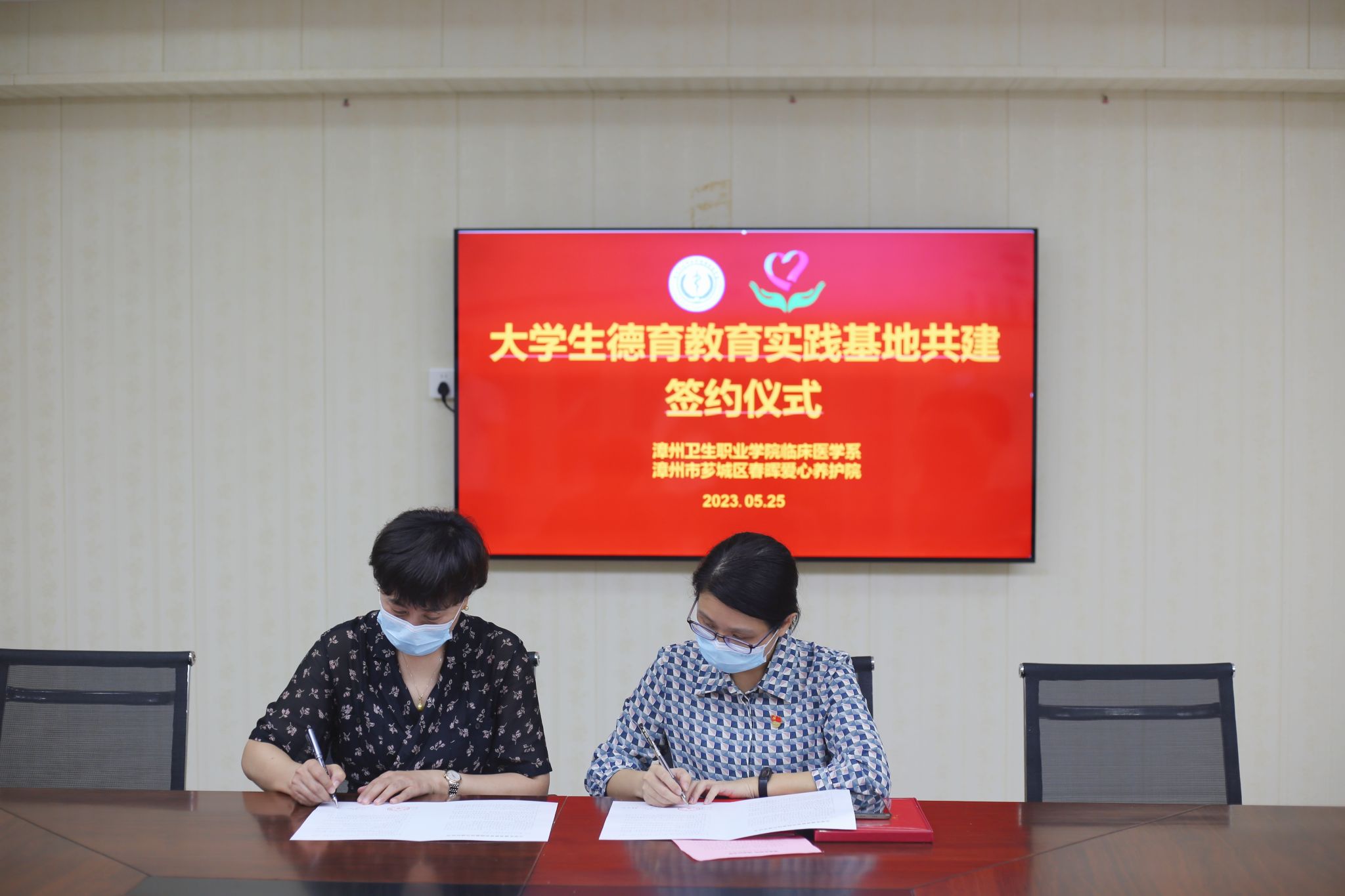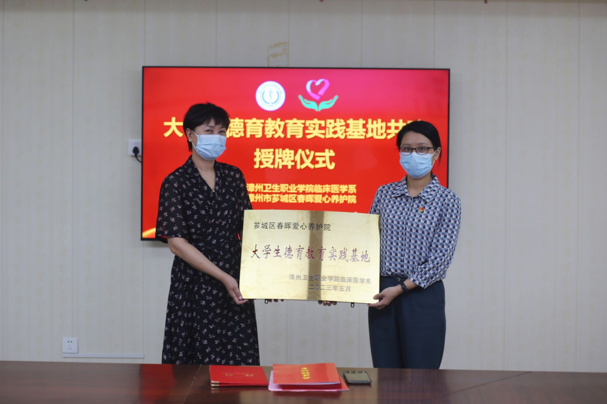 5月25日,临床医学系前往漳州市芗城区春晖爱心养护院,举行大学生德育教育实践基地共建签约仪式。春晖爱心养护院院长陈志红、副院长黄虹、办公室主任陈艺红,临床医学系副主任、学工代表、部分学生干部参加仪式。
