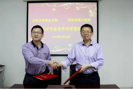 蔡韶滨副院长表示,漳州市第二医院、漳州市第三医院是漳州地区两家技术精湛、环境优美、设备先进、特色鲜明、服务一流的现代化综合性三级医院,感谢医院对我院办学成绩、办学实力的充分信赖,及对我院长期以来的支持。希望双方在专业共建、师资交流、实习就业、临床实践、教学科研等方面更加深入合作,探索校企合作的长效机制,实现双方优势互补、互惠共赢。