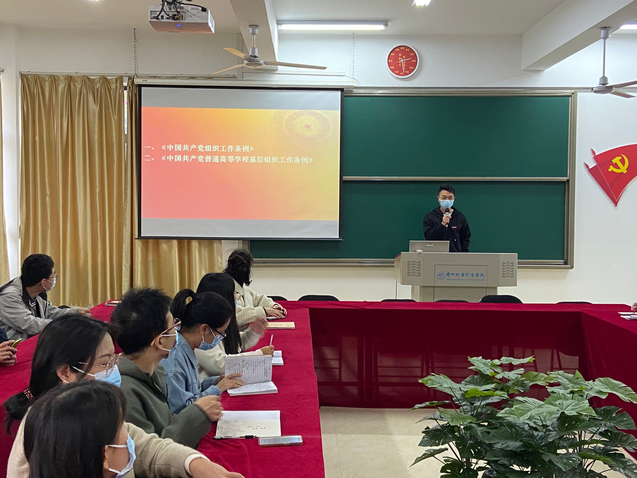 会上,杨老师从背景、意义、遵循的主要原则、主要内容等方面,分别对《中国共产党普通高等学校基层组织工作条例》和《中国共产党组织工作条例》进行了详细解读。杨老师指出,学习好相关内容是贯彻新时代党的建设总要求和新时代党的组织路线,要以习近平新时代中国特色社会主义思想为指导,以党的政治建设为统领,增强“四个意识”、坚定“四个自信”、做到“两个维护”,全面贯彻党的教育方针,高质量高标准开展党建规范化标准化建设,以高度的政治忠诚、政治定力、政治担当,促进党建与中心工作深度融合,推动党总支党的建设全面提质增效。