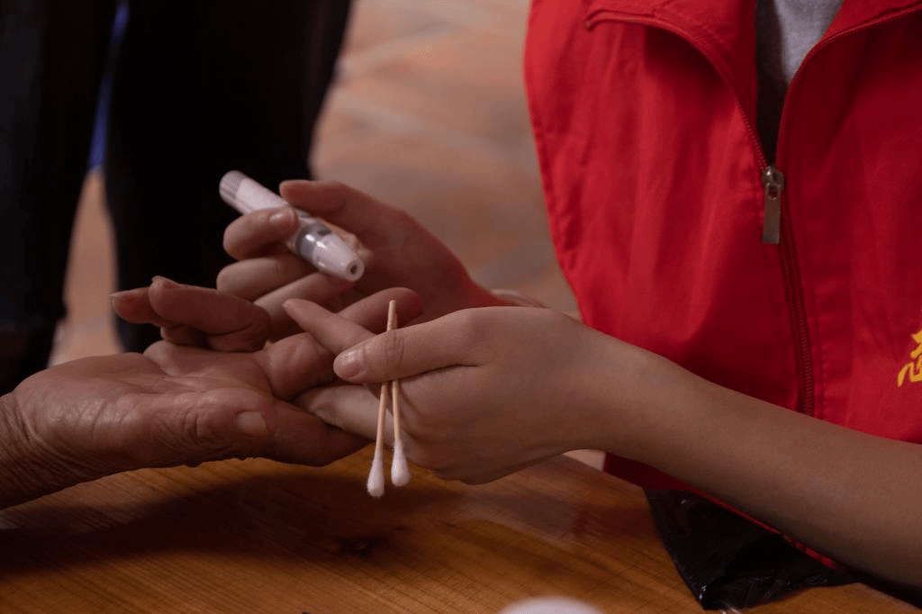 之后,在陈伟琳老师的带领和指导下,志愿者们来到后溪村南山自然村老人活动中心,为村里面的老人们带来健康服务,普及急救知识、量血压、测血糖、测尿酸。健康服务结束后,活动小分队还为老人们送上花生油、肥皂等重阳节慰问品,现场气氛火热,老年人们其乐融融。活动过程中,陈伟琳对村里面的每个老年人的身体状况如数家珍,对待村民态度温和,极具耐心。同学们目睹了并参与了现场的一频一幕,更加体验到了从医所需要的尊重生命、厚德仁爱、无私奉献、慎始慎终、醉心科学等品质,更加感受到身上沉甸甸的责任。