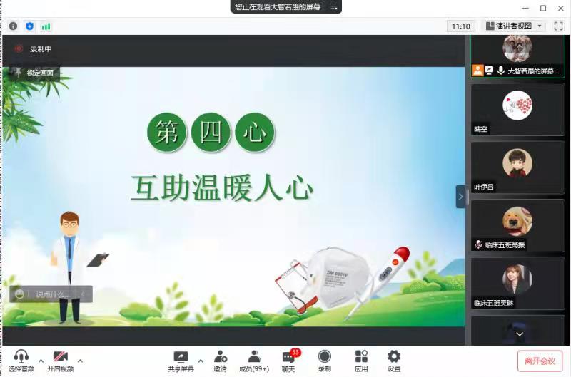 3月19日晚8时,临床医学系学生党支部发挥战斗堡垒作用和党员先锋模范作用,组织学生开展专题“心理防疫”微讲座,讲座题为《同“心”战疫,静待春暖花开》。讲座通过腾讯会议直播进行,讲座由临床医学系学生党支部书记郑智生老师主讲,有500多名学生参与其中。