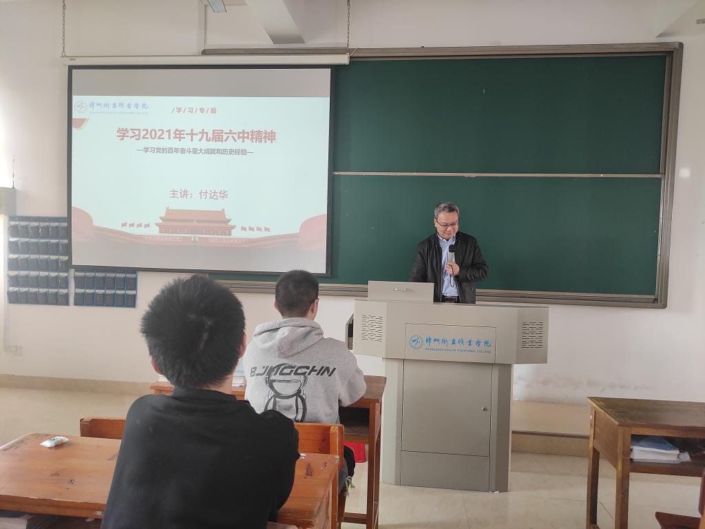 12月15日上午,临床医学系主任在厚德楼303教室给2021级预防医学班的同学讲授了一堂学习贯彻党的十九届六中全会精神专题思政课。