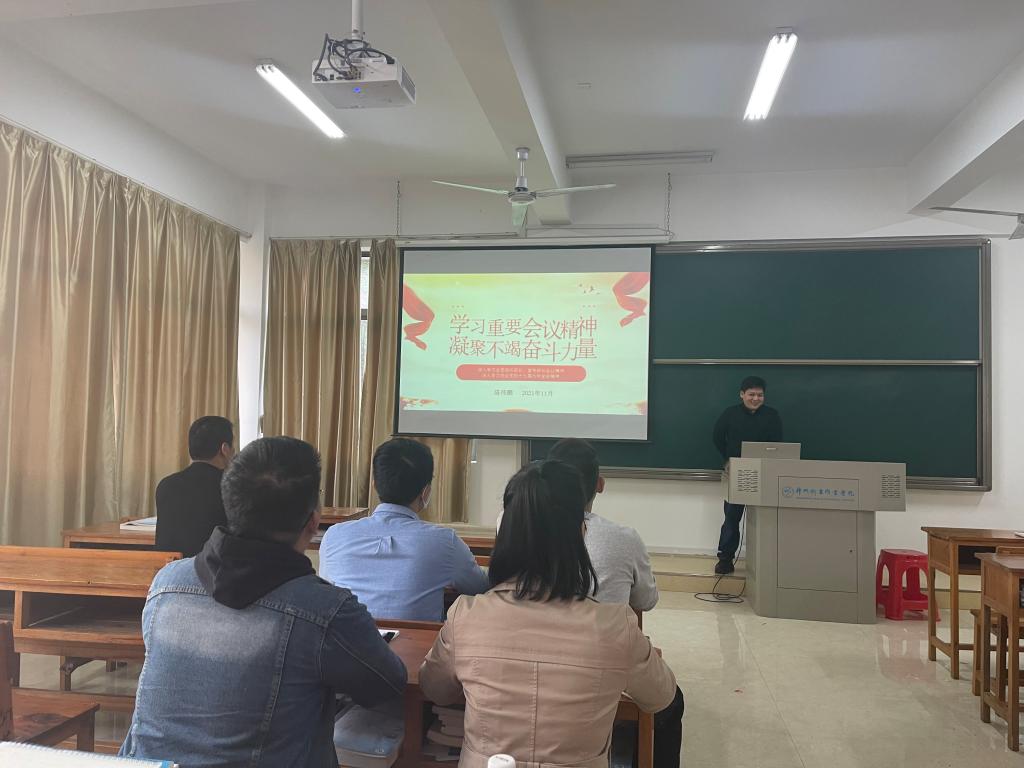 11月25日下午,临床医学系党总支理论学习中心组在厚德楼304组织学习全国组织部长、宣传部长会议和十九届六中全会精神,会议由临床医学系陈老师主讲。