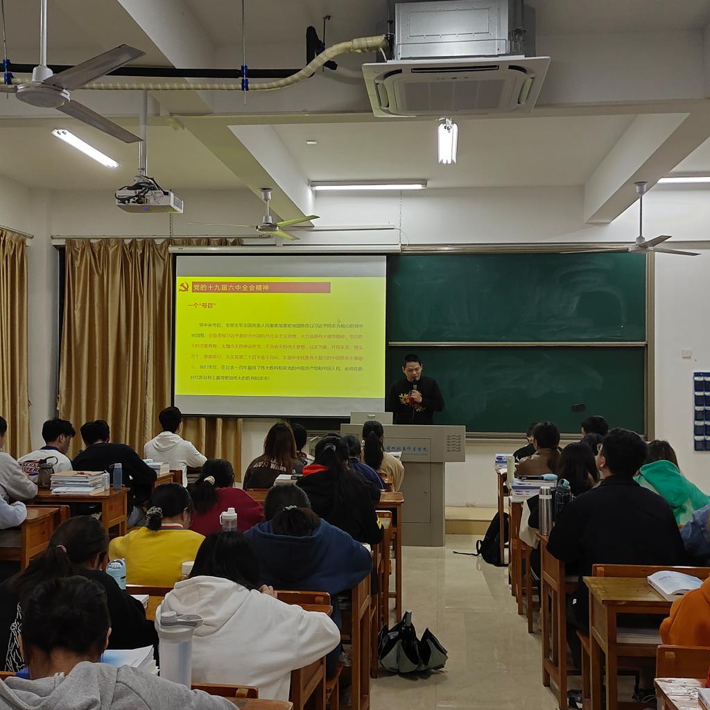 11月23日晚,临床医学系学生党支部书记在厚德楼404教室为2020级高职临床医学5班学生宣讲十九届六中全会精神。