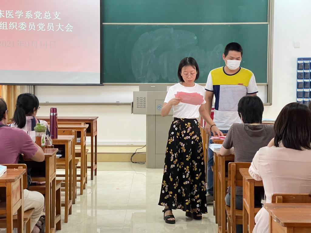 根据《关于同意护理系党总支、药学系党总支、临床医学系党总支、医学技术系党总支、口腔医学系党总支、基础部党总支、机关第二党总支委员候选人预备人选和党员大会时间的批复》(漳卫职委〔2021〕74号),临床医学系党总支于2021年9月14日下午于厚德楼305召开临床医学系总支党员大会。大会严格按照《中国共产党章程》和《中国共产党基层组织选举工作条例》的规定程序。会议由党总支副书记主持,全体党员参会。