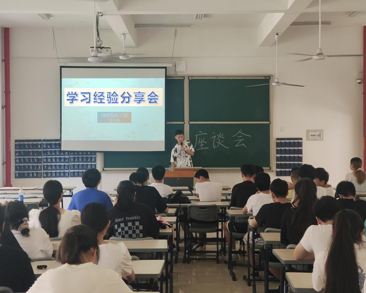 7月4日上午,2020级高职临床医学6、7班在励志楼101教室召开“扬学习之帆,启成才之路”学习经验分享会, 2018级临床医学专业优秀毕业生胡少强、隋萍莉应邀参加此次学习经验交流会。