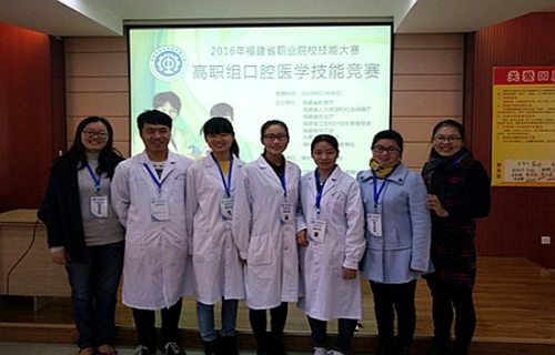 由福建省教育厅、福建省人力资源和社会保障厅、福建省农业厅、福建省卫生和计划生育委员会、福建省总工会、共青团福建省委、福建省中华职业教育社主办,漳州卫生职业学院承办,日进齿科材料(昆山)有限公司协办的2016年福建省职业院校技能大赛口腔技能竞赛于1月6日在我院附属口腔医院隆重举行,福建省4所高职院校16名选手参加角逐。