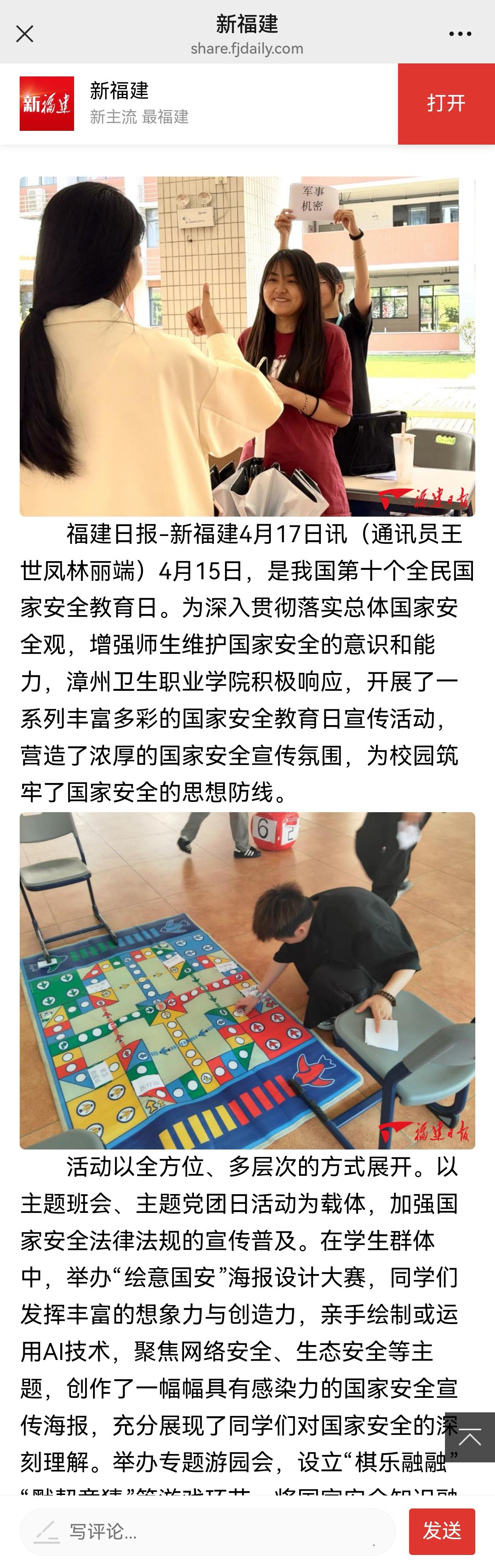 新福建:漳州卫生职业学院开展国家安全日系列活动
