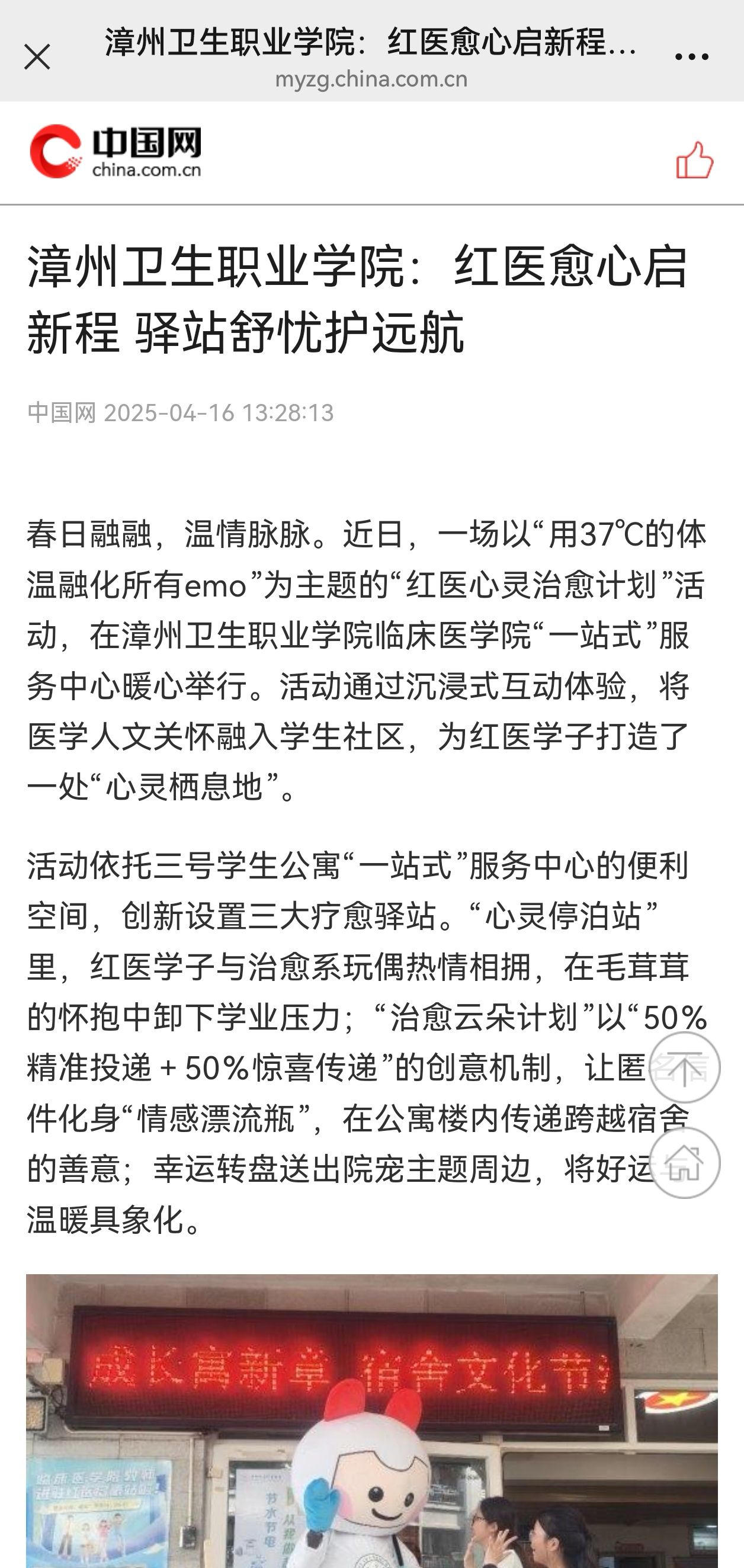 中国网:漳州卫生职业学院:红医愈心启新程 驿站舒忧护远航
