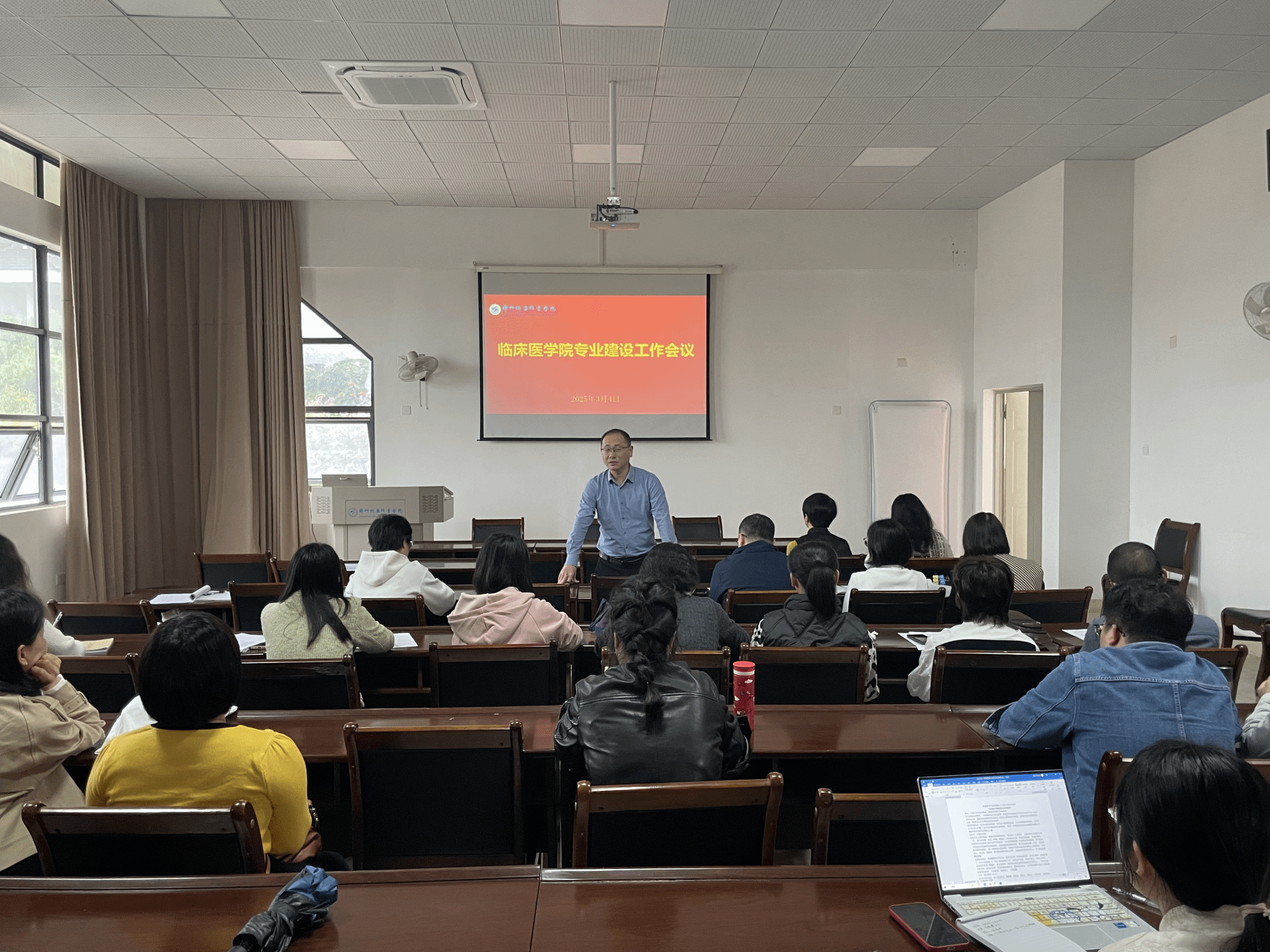 会上,我院四位专业带头人分别就各自专业的建设情况、业绩成果、存在问题以及未来规划进行了现场汇报。院长在肯定成绩的同时,也对各专业建设工作提出了要求,要求大家思想上高度重视,行动上快速推进,成果上善于总结。他强调,专业建设是学院发展的核心任务,关乎人才培养质量与学院的长远发展。在当前医学教育改革不断深化的背景下,临床医学院面临着新的机遇与挑战,必须以更高的标准、更严的要求推进专业建设工作。