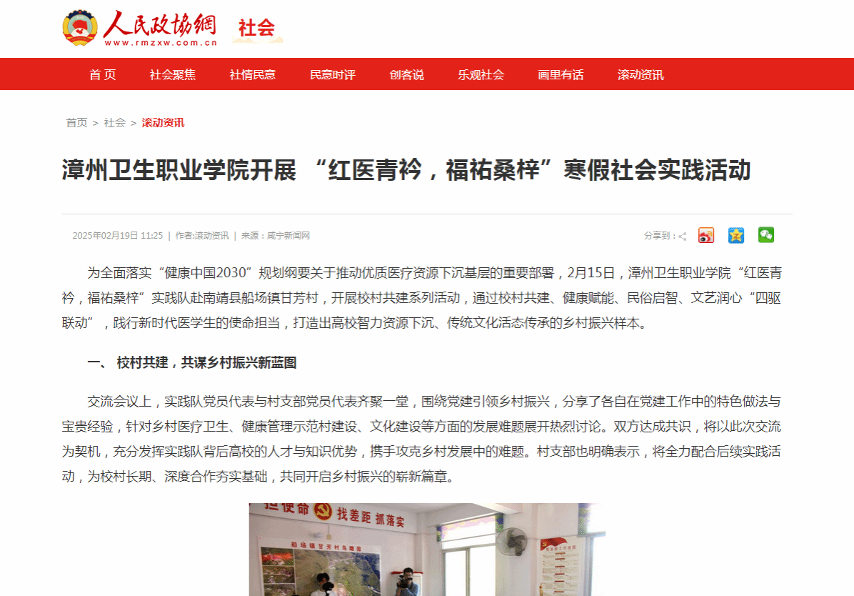 下一篇:中国基层网:漳州卫生职业学院开展 “红医青衿,福祐桑梓”寒假社会实践活动