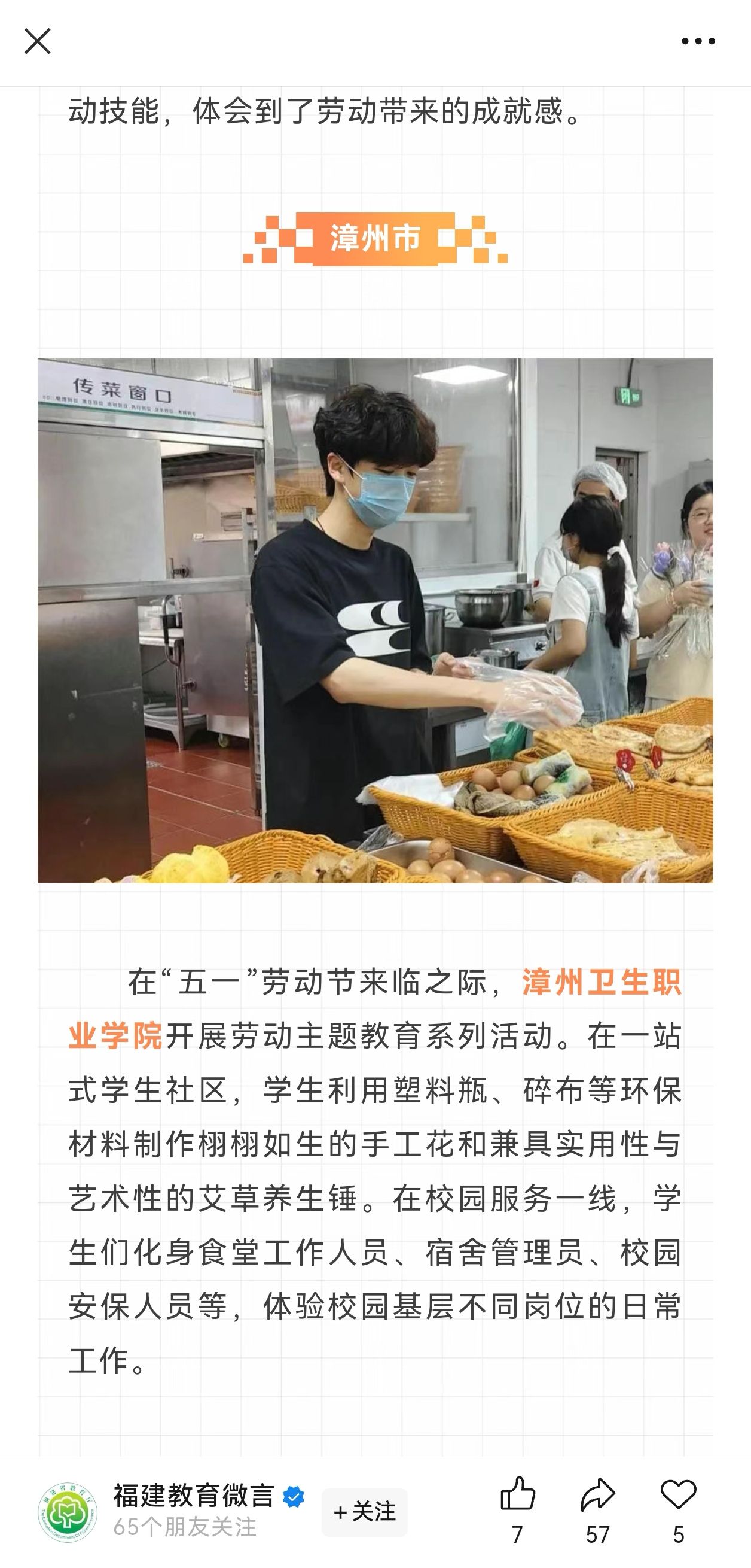 福建教育微言:漳州卫生职业学院开展劳动主题教育系列活动