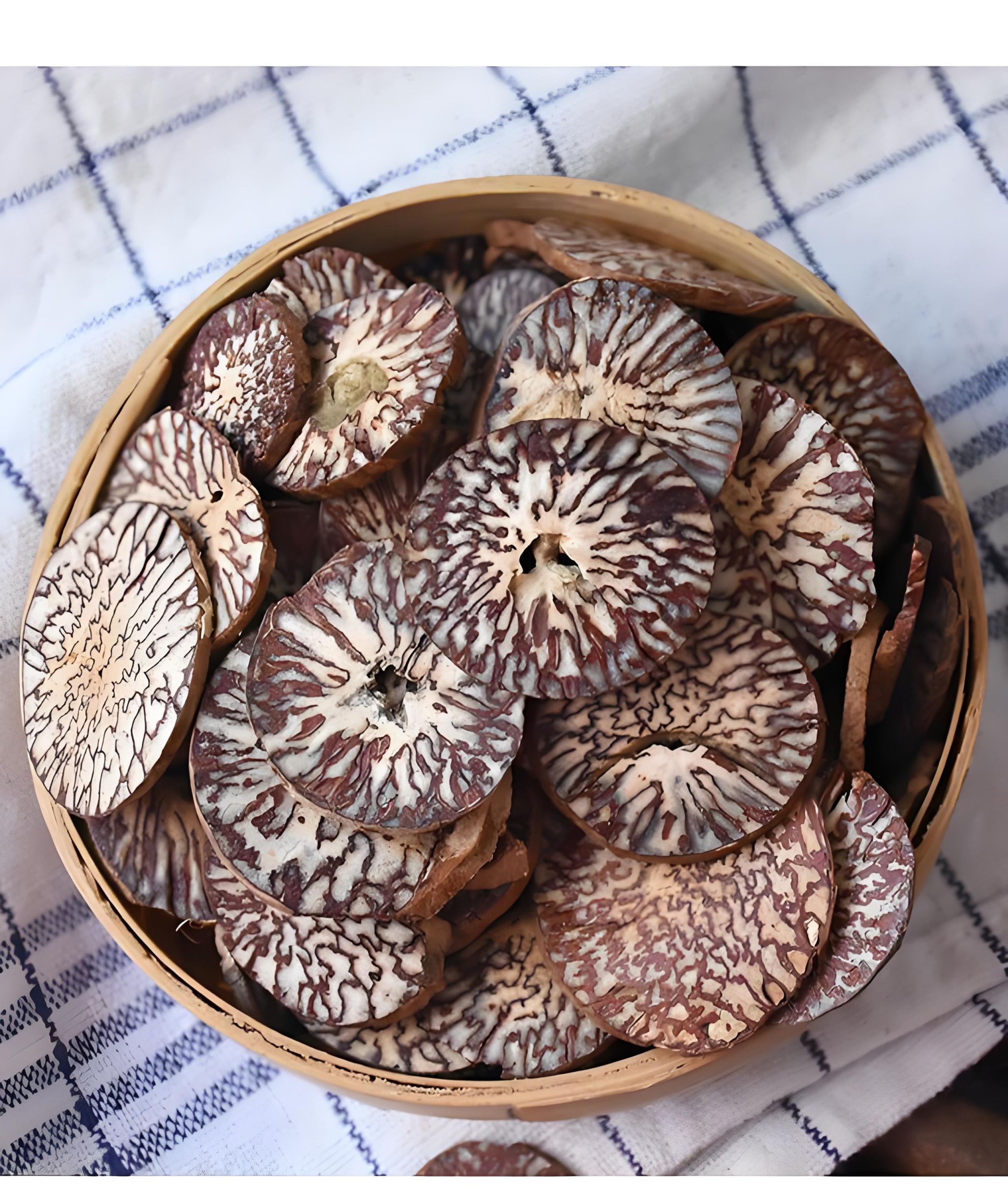 槟榔:除去杂质,浸泡,润透,切薄片,阴干。