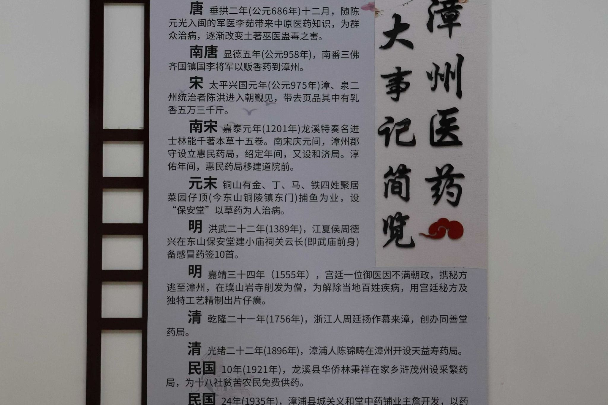 漳州医药大事记简史