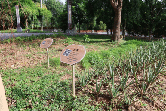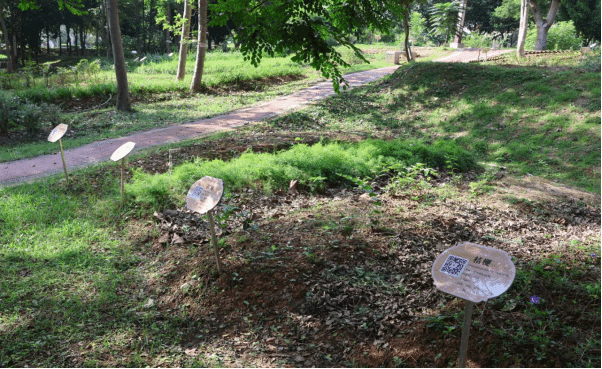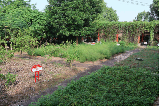 “土园”种植区共种有35种药用植物,归脾,主要有蔓荆子、苍术、椿、刺儿菜、刺五加、大豆、大蒜、刀豆、凤仙花、高良姜、葛、胡萝卜、花椒、姜黄、结香、猕猴桃、南沙参、爬山虎、忍冬、山楂、石榴、茵陈、紫丁香、紫藤、白茅、石菖蒲、白积雪草、红积雪草、天香菜、蒲公英、马鞭草、黄花旱莲草、白花旱莲草、鬼针草、射干等。