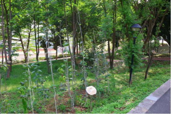 “水园”种植区共种有药用植物6种,分别是光叶细刺枸骨、台湾榕、柳叶榕、菝葜、地肤、巴戟天。