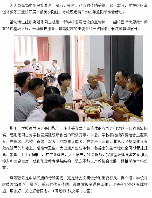 东南网:漳州卫生职业学院开展2023年重阳节敬老活动