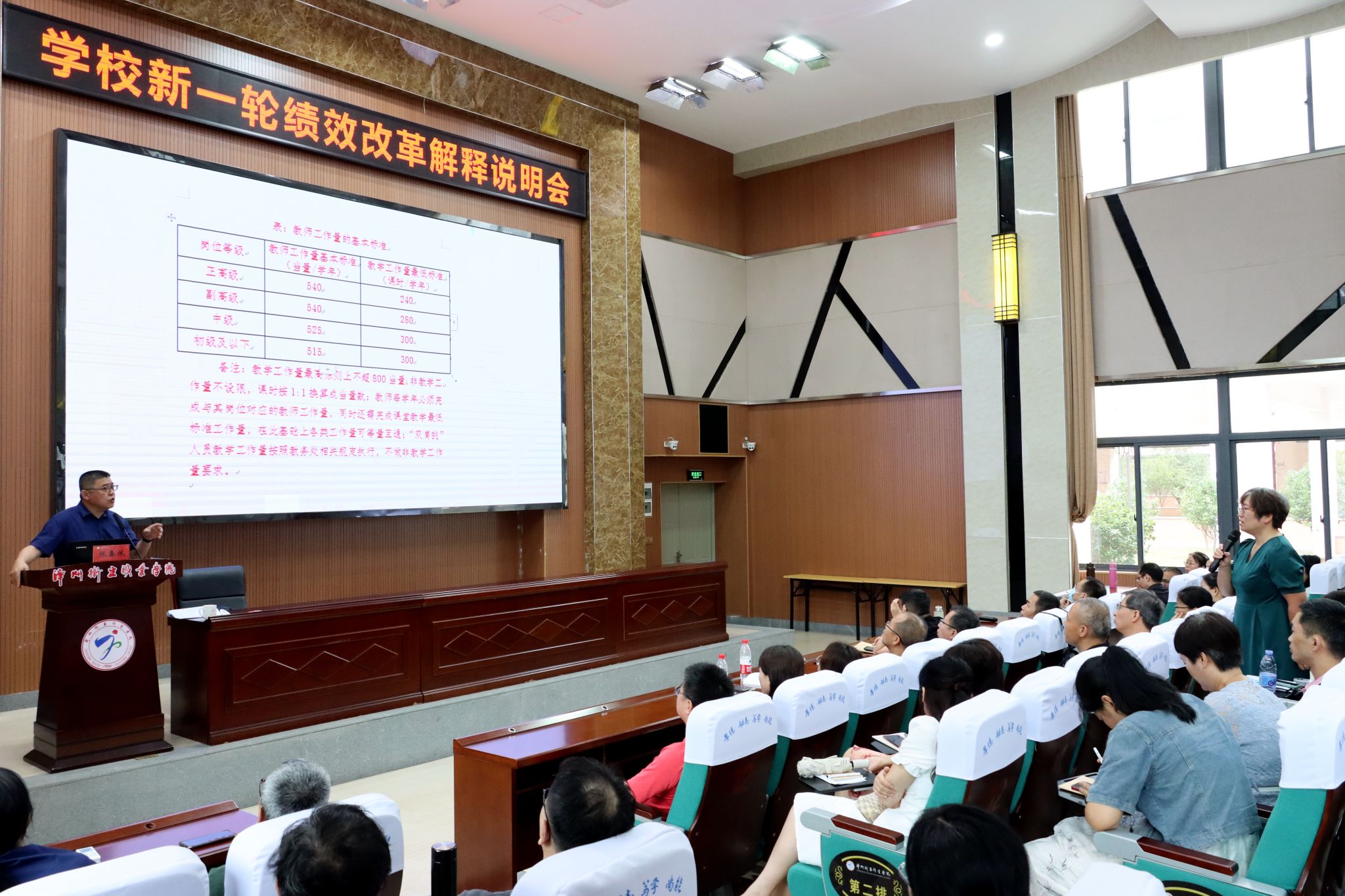 为进一步深化学校综合改革,发挥绩效工资分配的激励作用,促进学校可续持发展。7月2日上午,我校新一轮绩效工资分配制度改革说明会在学术报告厅召开,全校副科级及以上干部、二级学院党政办、教科研办、学工办、党建办负责人、各教研室主任、专业带头人、实验室负责人及教师代表参加会议,会议由学校副校长张春斌主讲。