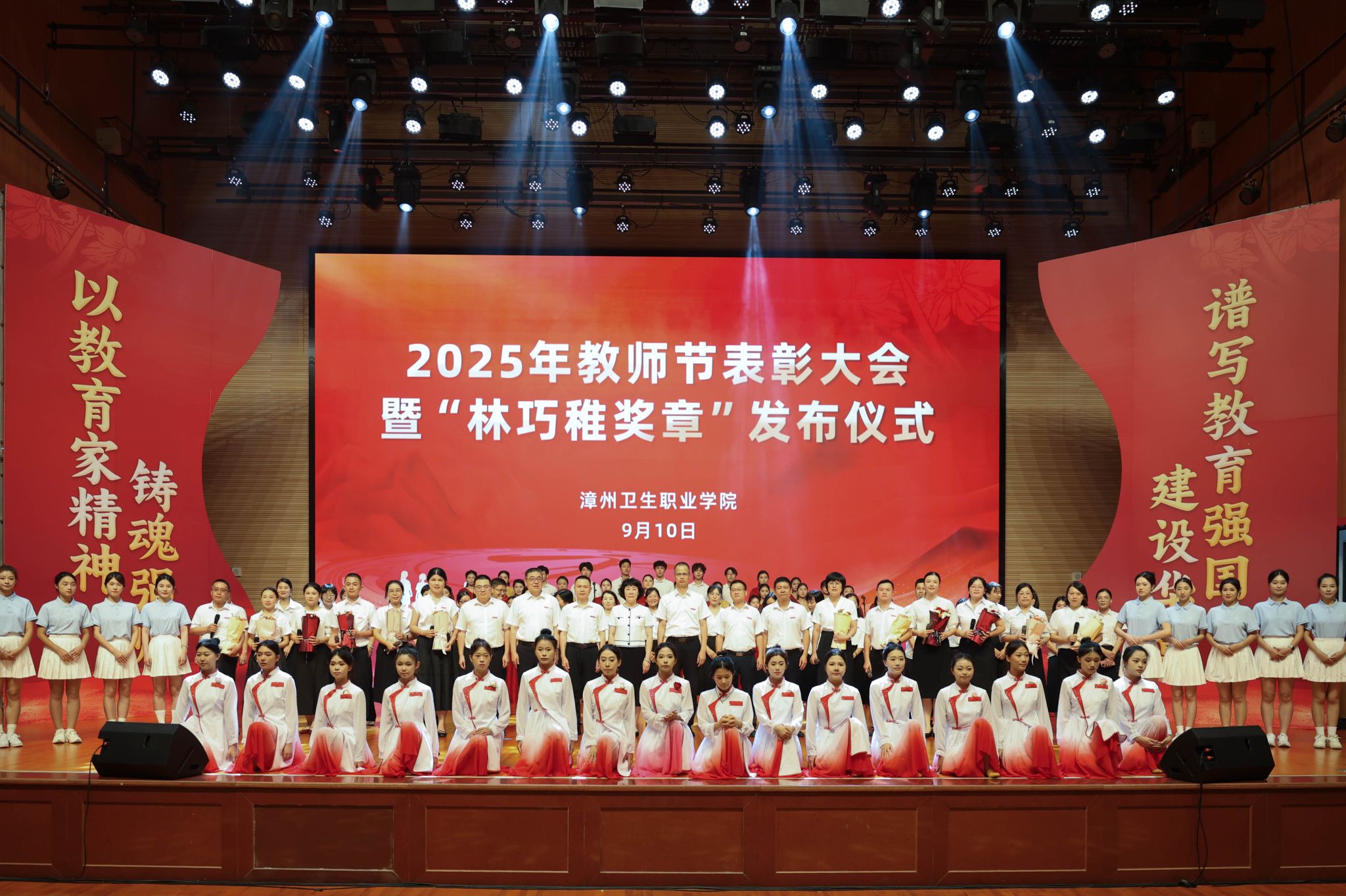 首届“林巧稚奖章”获得者代表李珍和优秀兼职教师代表唐聪海分别在会上作发言。大会以舞蹈剧《人民的林巧稚》拉开帷幕,校歌《天使的翅膀》伴其尾声,以舞姿生动展现林巧稚精神在校园的薪火传承,以旋律凝聚漳卫人的初心与力量。