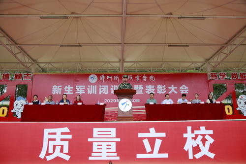 10月30日下午,我院在运动场组织召开2020级新生军训结训式暨表彰大会。市武警支队副参谋长陈松树,副院长房立平,学生处、团委、各系书记(副书记)、承训教官、辅导员及全体新生参加大会。