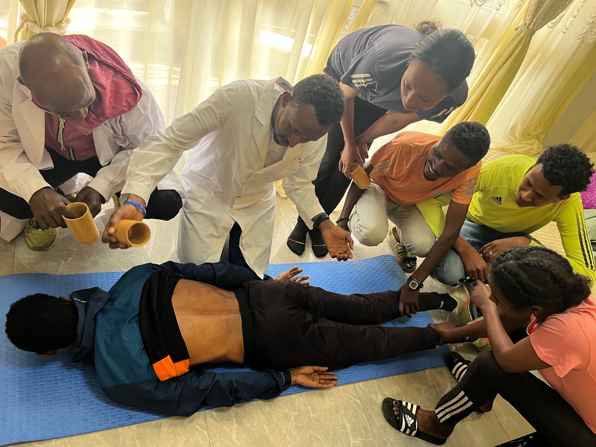 本次中医适宜技术指导标准输出是漳州卫生职业学院连续开展卫生健康研习对外交流活动的提升。2023年受非洲高水平训练营官方委托,为其开发适宜技术双语课程资源及操作考核标准,共有推拿、按摩、刮痧、拔罐、艾灸等十项传统适宜技术。本次限额培训,共有30名来自埃塞俄比亚、肯尼亚、坦桑尼亚高水平马拉松运动员踊跃参与,通过培训练习,最终7名运动员通过考核,获得证书。