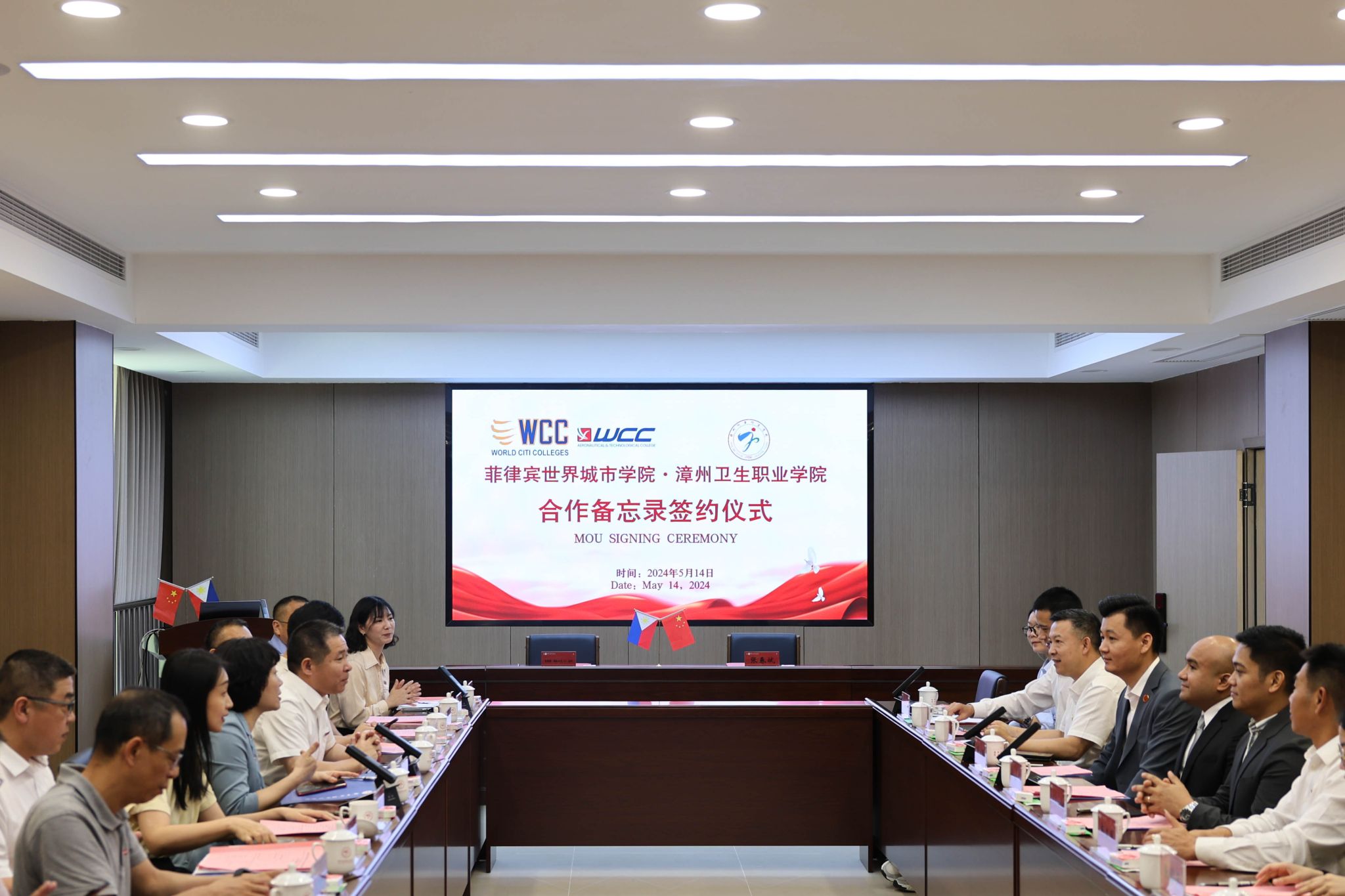 5月14日上午,菲律宾世界城市学院校长Raymond Patrick V. Guico一行到我校交流访问,学校党委书记陈超,副校长陈义三、张春斌,党政办公室,社会合作处及相关二级学院负责人参加活动。