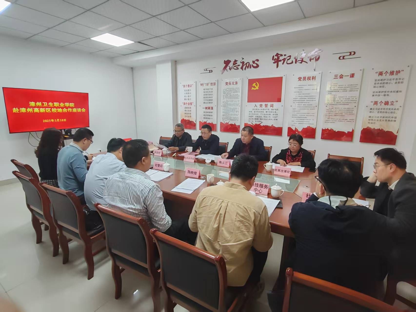 漳州高新区党工委委员、管委会副主任陈映煌对陈义三一行的到来表示热烈欢迎。陈义三首先对学校的整体情况进行了详细介绍。他表示,我校在医学教育领域拥有深厚的历史积淀和坚实的办学基础,特别是在医药卫生专业人才培养方面成果显著,为社会输送了大量优秀的专业人才。学校还具备完善的教学设施和强大的科研团队,在多个医学领域开展了深入的研究,取得了一系列科研成果,这些都为校地合作提供了坚实的保障。