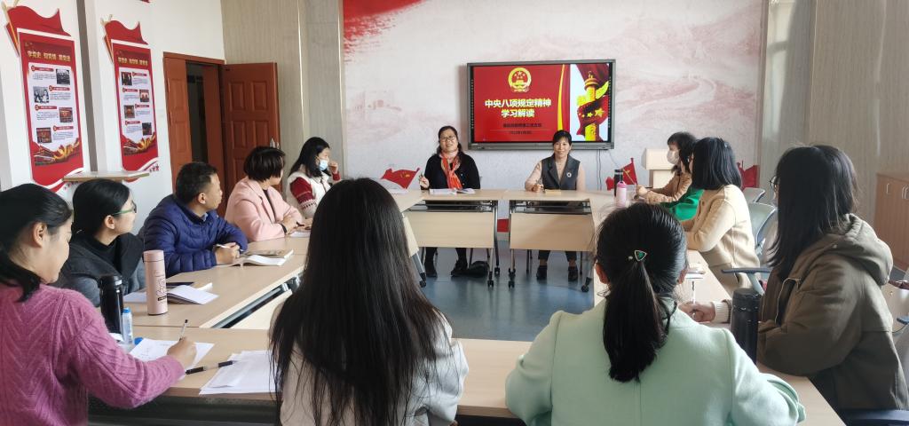 1月8日上午,基础部教师第三党支部在党建活动中心召开了中央八项规定精神学习解读会,重温八项规定精神,加强自身作风建设,营造踏实、努力、肯为的精神,为学院新一年开启的新征程贡献力量。