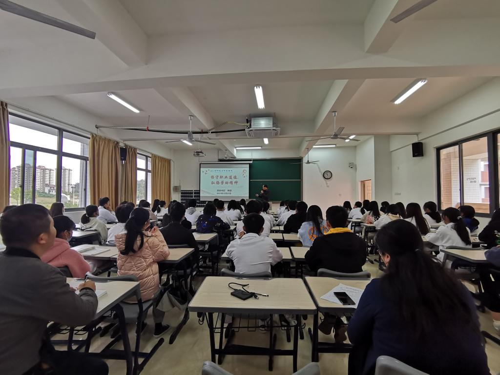 12月22日下午,学院党委书记林忠以“恪守职业道德,弘扬劳动精神”为主题,在笃学楼205教室为2021级高职中医学班学生讲授思政课。