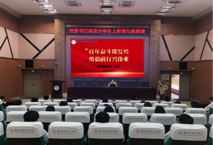 6月16日上午,学院党委书记林忠以《百年奋斗谋复兴 勇毅前行兴伟业》为题,在学术报告厅为我院习近平新时代中国特色社会主义思想读书社、青马学社成员讲授了一堂精彩的形势与政策课。