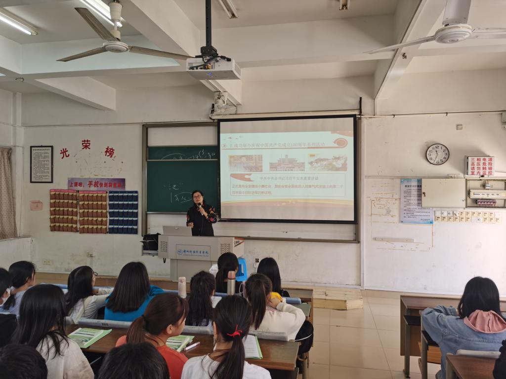 张绿文围绕党的十九届六中全会的主要内容进行阐述,她指出青年学生要以马克思主义及其中国化创新理论武装头脑,领会六中全会精神的丰富内涵与核心要义,细悟我们为什么能够成功,未来我们怎么才能继续成功。她强调青年学生要从百年辉煌成就中汲取坚定理想信念的力量,学好专业知识,练就过硬本领,将小我融入大我,以实际行动践行使命担当。