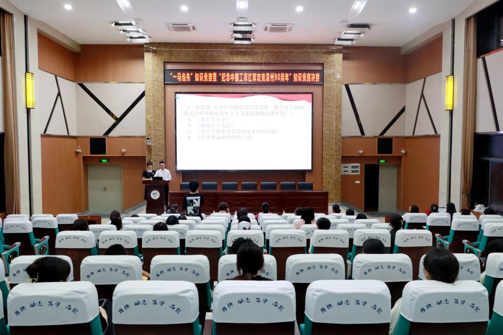 2022年是红军攻克漳州90周年,组织开展“一马当先”知识竞赛暨“纪念中国工农红军攻克漳州90周年”知识竞赛活动,是为了更好地总结历史经验,把握历史规律,传承红色基因。本次比赛历时两个月,覆盖2021级全体学生,初赛阶段2021级全体同学以班级为单位,依托学习通平台开展线上知识竞赛,共遴选50位同学进入复赛。复赛阶段同样采取线上竞答方式遴选出15名同学进入决赛,经过现场的激烈角逐,最终决出一等奖5人,二等奖10人,三等奖15人。本次知识竞赛的内容涵盖党史、漳州战役、概论课程等,以赛促学、以赛促进,激励广大青年学子从百年党史中汲取智慧和力量,以更加昂扬的姿态、更加饱满的热情凝心聚力、奋发前进,用医学专业知识服务人民和社会,助力健康中国建设。