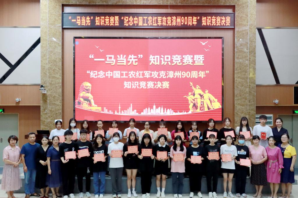 6月5日,由马克思主义学院主办的“一马当先”知识竞赛暨“纪念中国工农红军攻克漳州90周年”知识竞赛决赛在学术报告厅顺利举行。马克思主义学院院长及思政课教师出席比赛现场。经过现场比拼,最终2021级高职中药学一班陈嘉艺、2021级高职中药学一班林锦峰、2021级高职护理十一班卜晓倩、2021级高职针灸推拿二班张紫轩、2021级高职药品经营与管理二班许艺婷获得一等奖。