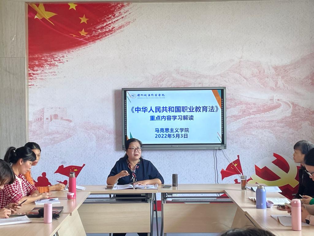2022年4月20日,第十三届全国人民代表大会常务委员会第三十四次会议通过《中华人民共和国职业教育法》修订,自2022年5月1日起施行。为深入学习贯彻《中华人民共和国职业教育法》最新精神, 5月3日,我院就新修订的《中华人民共和国职业教育法》开展集中学习,学院全体教师参加。
