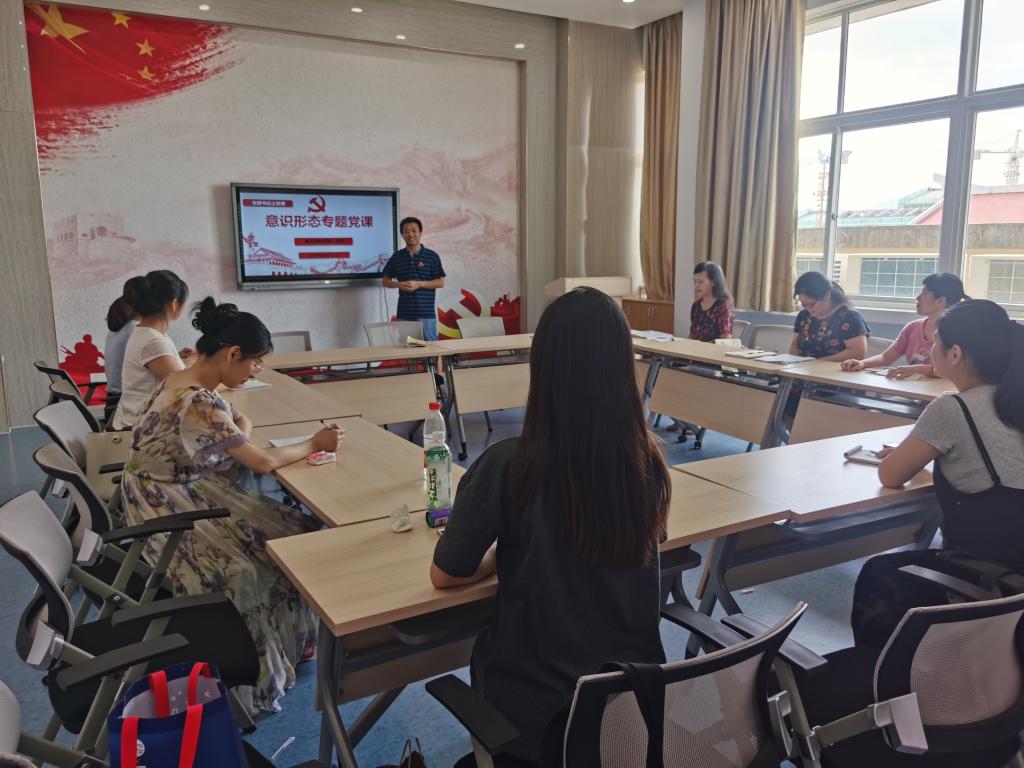 6月23日下午,基础部教师第三党支部以“意识形态专题党课”的形式开展主题党日活动。支部书记进行授课,支部全体党员干部参加。