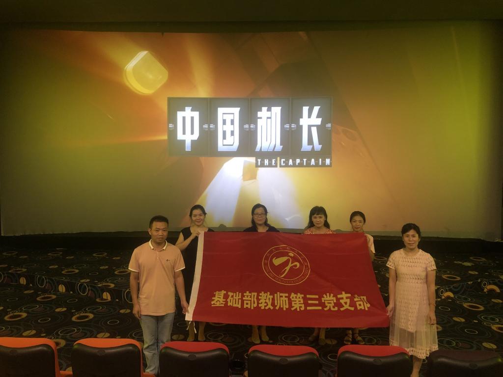 10月15日下午,基础部教师第三党支部全体党员在支部书记的带领下,来到影院,一同观看先进典型事迹电影《中国机长》。