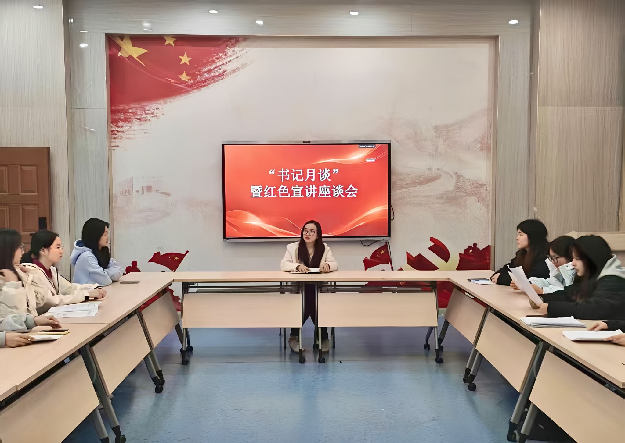 12月19日下午,马克思主义学院教师第三党支部围绕“稚爱青马”品牌建设,在党建活动中心组织了一场面向“青马医声”宣讲团成员的“书记月谈”暨红色宣讲座谈会。支部副书记通过“书记月谈”活动,与宣讲团骨干就如何更好开展红色主题宣讲进行了座谈。