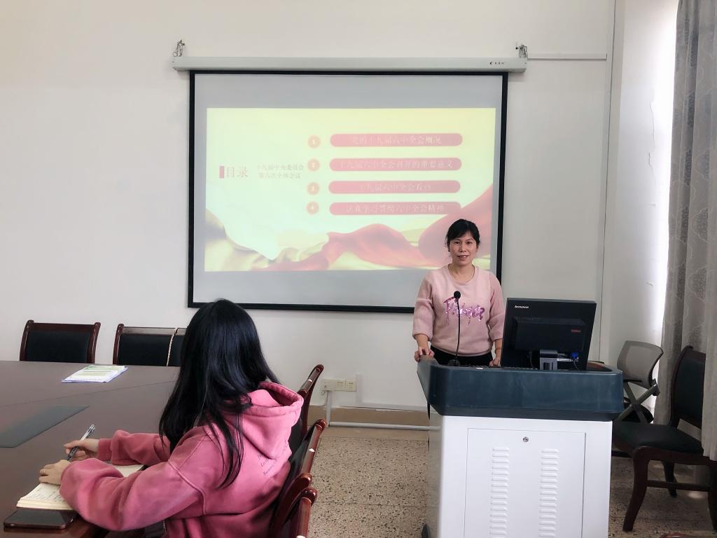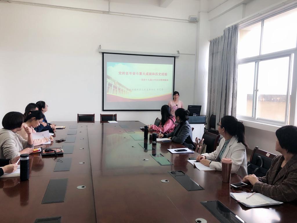11月26日下午,福建青年讲师团、漳州青年讲师团成员,基础部教师第三党支部书记基础部教师第三党支部书记在图书馆707向支部全体党员开展了题为《党的百年奋斗重大成就和历史经验---党的十九届六中全会精神解读》的理论宣讲。