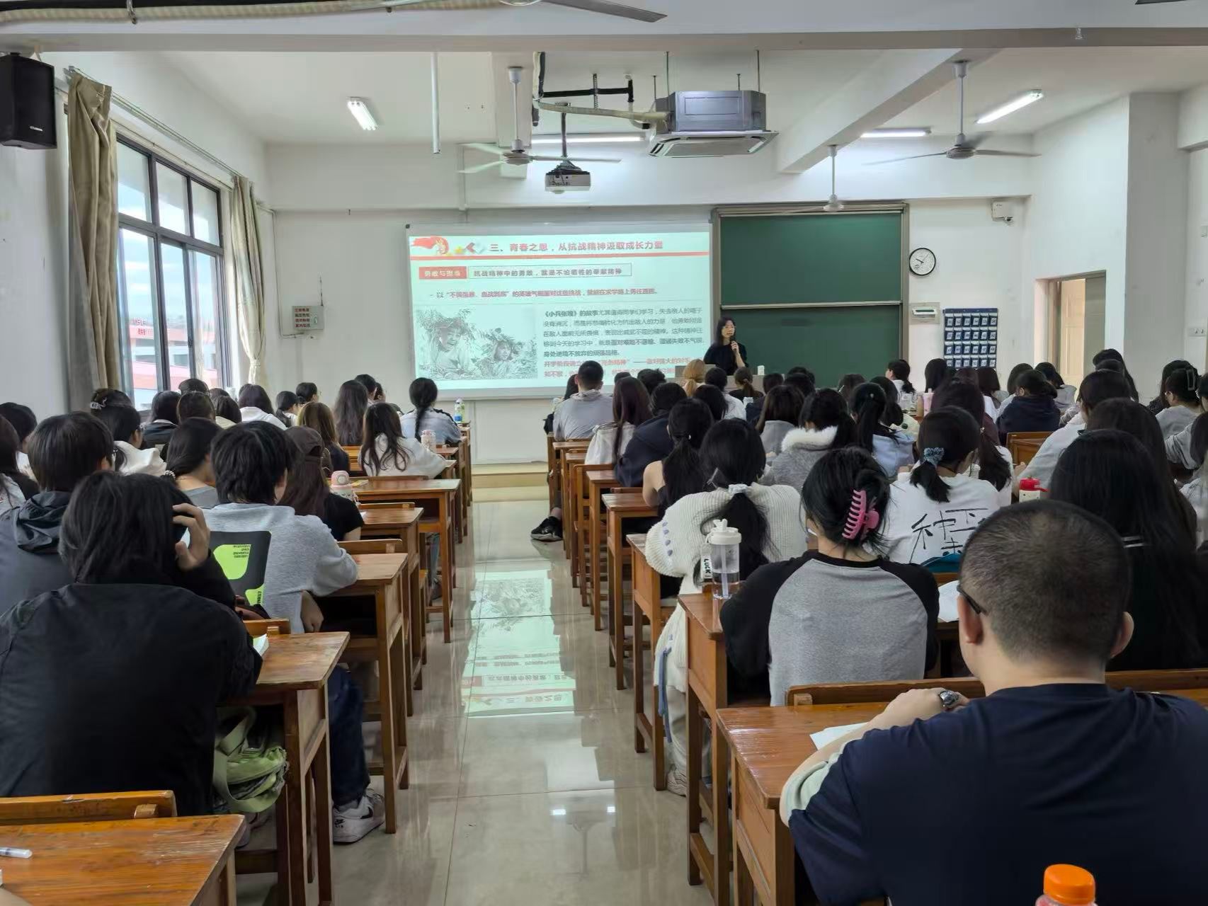 为引导青年学子从抗战历史中汲取精神养分,将爱国情怀与时代使命紧密结合,11月11日,我校开展以《弘扬伟大抗战精神 书写无愧于时代的青春篇章》为题的红色讲堂活动。2025级健康管理专业、预防医学专业的学生参与活动,共同重温峥嵘岁月,凝聚青春力量。
