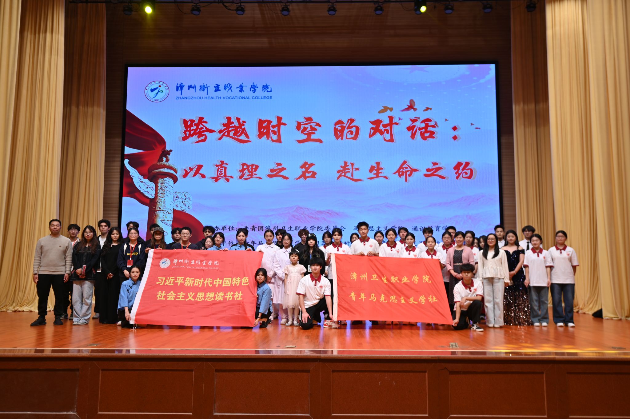 11月22日,由青年马克思主义学社、习近平新时代中国特色社会主义思想读书社联合校艺术团承办的“跨越时空的对话:以真理之名,赴生命之约”文化宣传活动暨迎新晚会在体育艺术中心圆满落幕。本次活动在校团委、马克思主义学院、通识教育学院的指导下,以学生为主体成功打造了一堂融合思想性、艺术性与专业特色的“行走的思政课”。