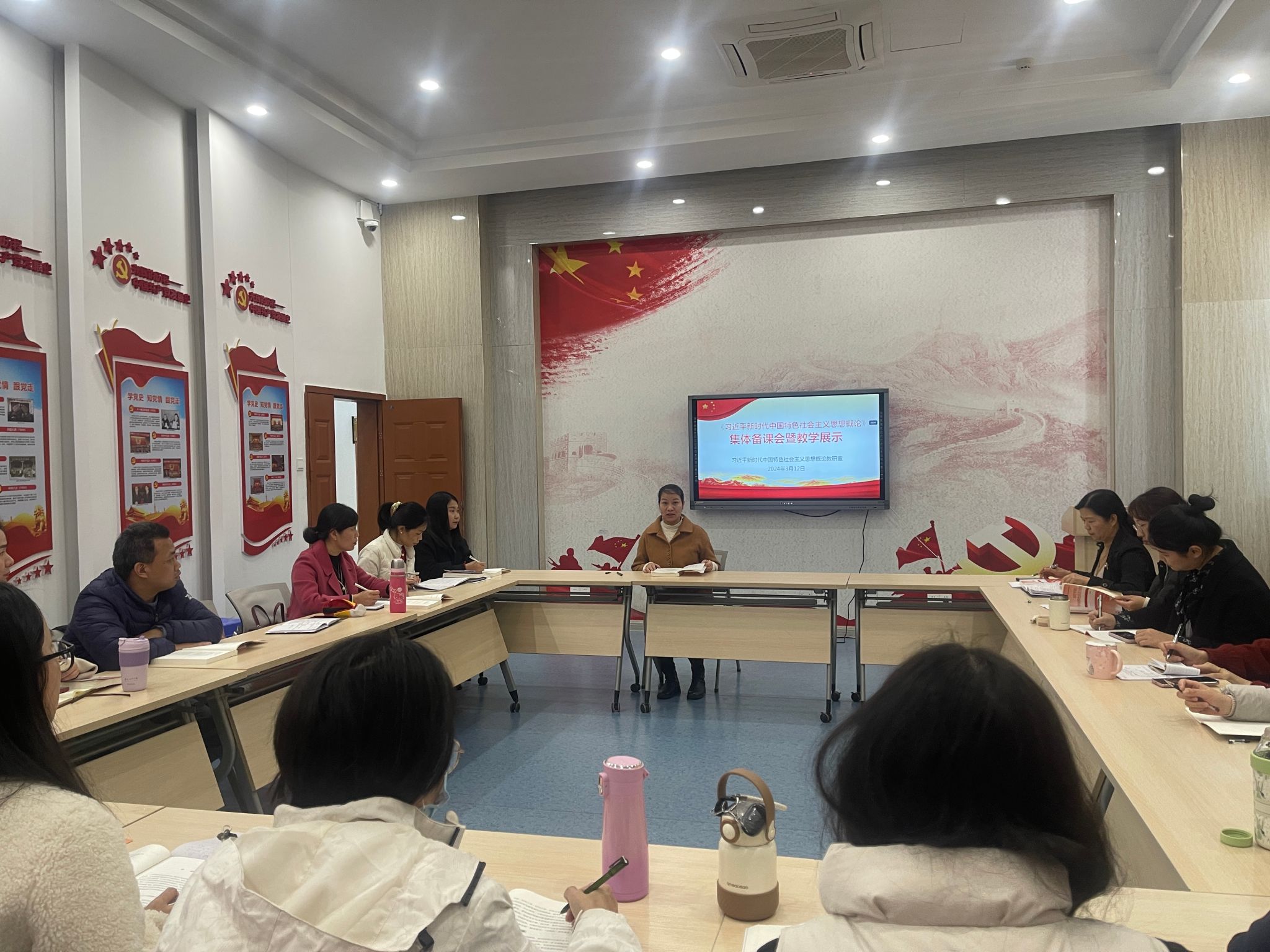 为用好《习近平新时代中国特色社会主义思想概论》教材,坚持用党的创新理论铸魂育人,推动思政课教学提质增效,3月12日下午,我院在党建活动中心召开《习近平新时代中国特色社会主义思想概论》新学期第一次集体备课暨教学展示会,会议由习近平新时代中国特色社会主义思想概论教研室主任主持。