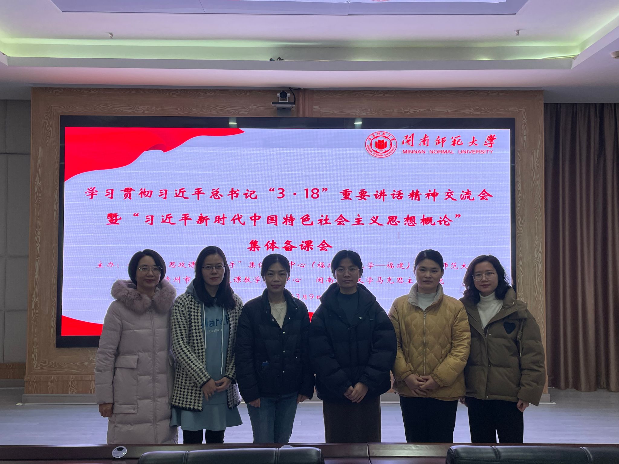 正值习近平总书记在学校思想政治理论课教师座谈会上重要讲话发表五周年之际,为深入学习宣传贯彻党的二十大精神,进一步贯彻落实习近平总书记关于思政课建设的重要论述,高质量推进新时代高校思想政治理论课建设,我院组织教师前往闽南师范大学,参加学习贯彻习近平总书记“3·18”重要讲话精神交流会暨“习近平新时代中国特色社会主义思想概论”集体备课会。