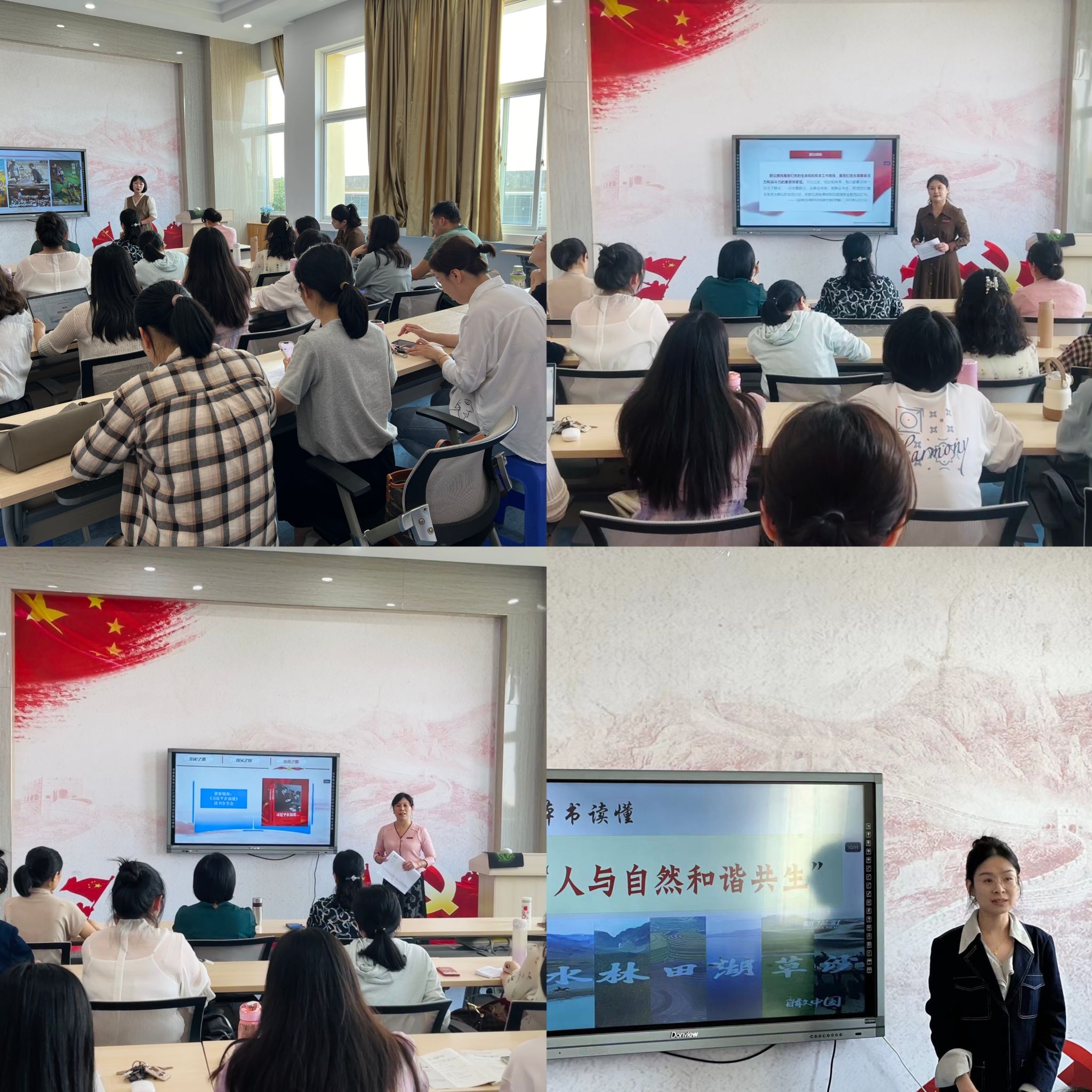 本次活动首先由各教研室推荐的教师进行现场教学展示。在前期各教研室集体备课、磨课研讨的基础上,4位参赛教师结合各门课程实际,围绕各自主题依次上台进行十分钟以内的现场教学展示。教师们选取具有典型性、时代性和现实性的教学素材,采用灵活多样的教学形式,以深厚的家国情怀、扎实的理论功底,努力打造出一堂堂思政精品课。随后进入点评环节,各位教研室主任结合自身的教育教学工作经验,从教学设计、现场表现、教学互动等方面对四个主题的教学展示进行了逐一点评,提出了意见和建议。最后,洪玉兰院长充分肯定教师们的精彩表现,并表示要进一步坚持思政课改革创新,推进“大思政课”建设,深化大中小思政课一体化建设,不断增强思政课的感染力、吸引力和亲和力。