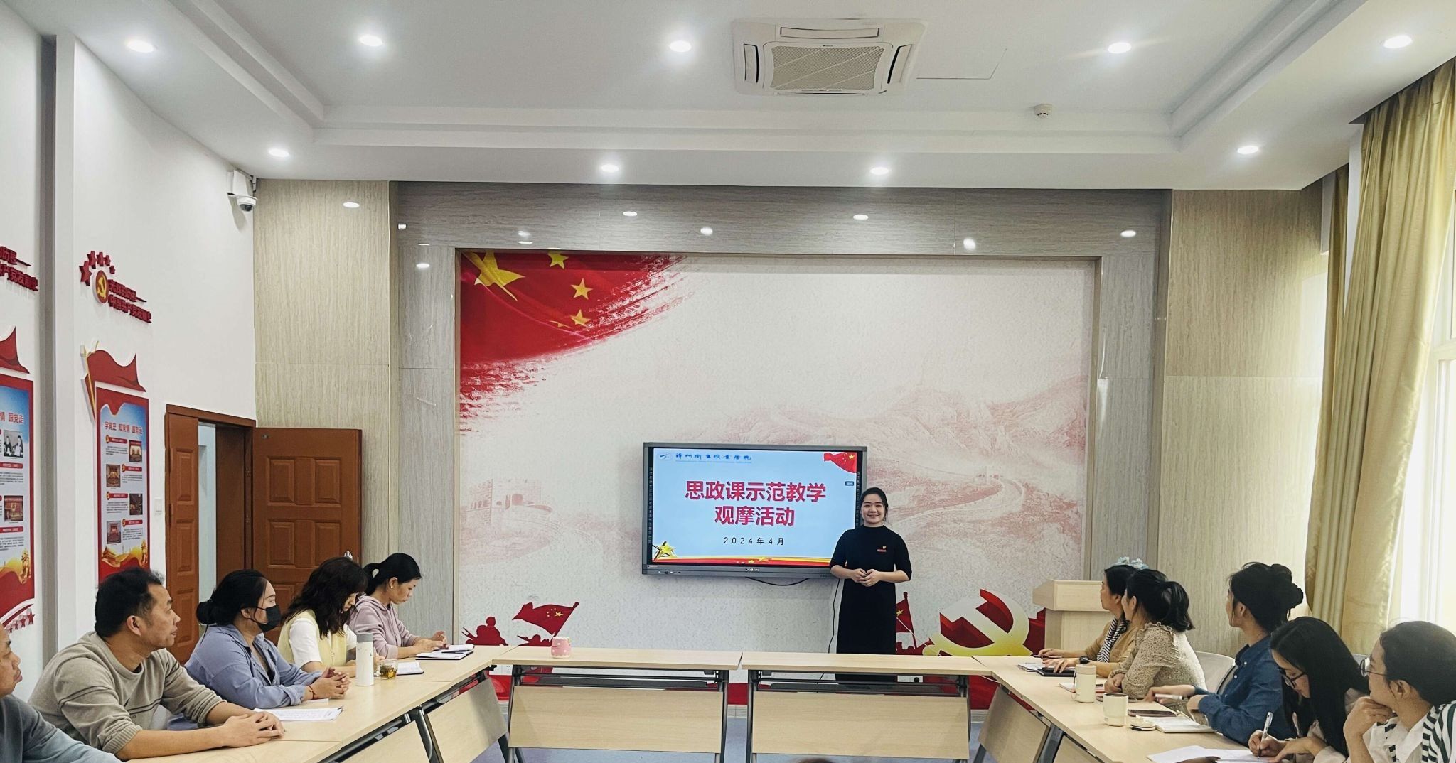 为深入贯彻落实习近平总书记在学校思想政治理论课教师座谈会上的重要讲话精神,建设一支政治要强、情怀要深、思维要新、视野要广、自律要严、人格要正的思政课教师队伍,4月2日下午,我院在党建活动中心开展思政课示范教学观摩活动。活动由马克思主义学院院长洪玉兰主持,邀请第三届全国高校思想政治理论课教学展示活动二等奖获得者吴菲琼老师进行示范教学展示,全体思政课教师参加观摩。