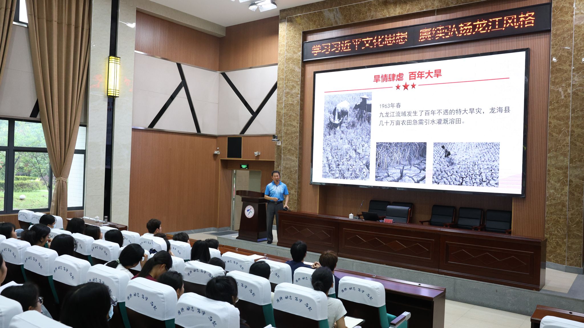讲座中,林馆长结合自己多年来学习研究“龙江风格”的心得体会和翔实的历史资料故事,从“龙江风格”的产生、“龙江风格”的提出、“龙江风格”的实质和内涵、“龙江风格”诞生的政治基础和文化基础等九个方面,生动讲述了“团结协作、无私奉献、顾全大局、舍己为人”的“龙江风格”。同时,他还结合学习习近平文化思想的感悟阐释“龙江风格”的历史价值和现实意义,寄语青年积极传承“龙江风格”,争当“龙江风格”的忠实守护者、坚定传承者和自觉践行者。
